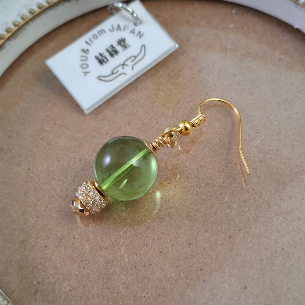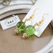 【爽やかなグリーンときらめきが耳元を彩る】大玉琥珀ピアス