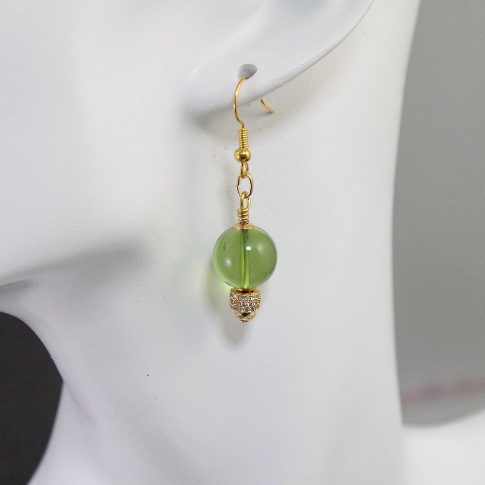 天然琥珀ピアス リトアニア グリーンアンバー 12mm ステンレス ジルコニアロンデル