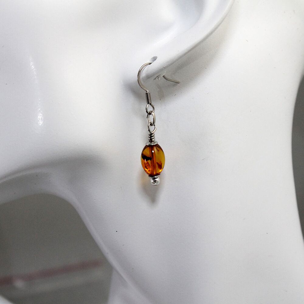 深みのあるブランデーカラーが特徴の天然琥珀ピアス。
