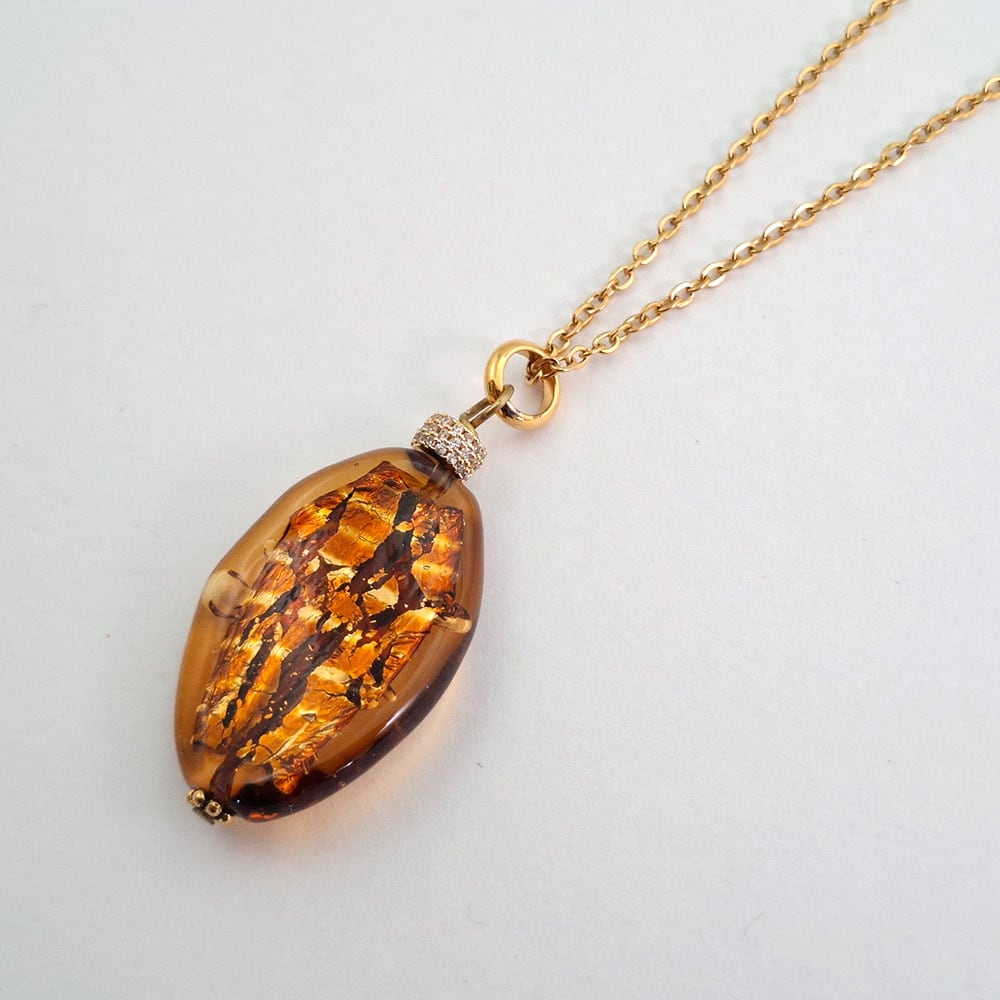 ベネチアンガラスネックレス ペンダント 金箔(24K)リーフツイスト型 ジルコニアロンデル venetian-013