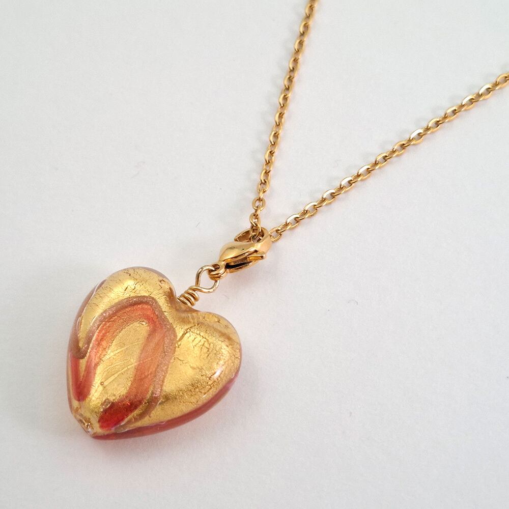 ベネチアンガラスネックレス ペンダント 金箔(24K)ハート型 venetian-019 | 結縁堂-you&-
